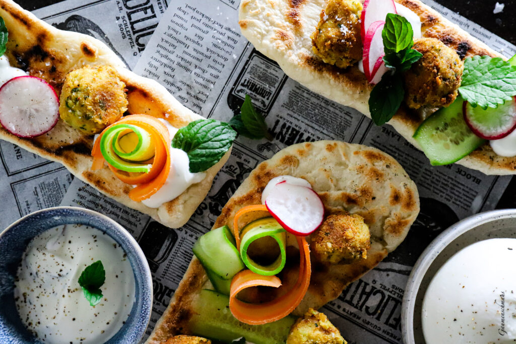 Ein köstliches Rezept geht online. Gibt es im Hause Gaumenschmaus immer wieder mal. Naan Brot sowieso, aber auch Falafeln lieben