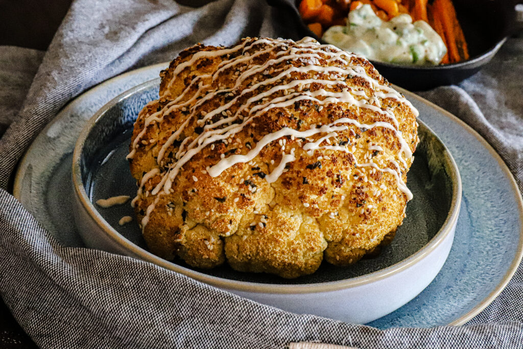 So ein ganzes Stück Karfiol aus dem Ofen – dessen Gabelbissen direkt auf der Zunge zergehen – kross und weich
