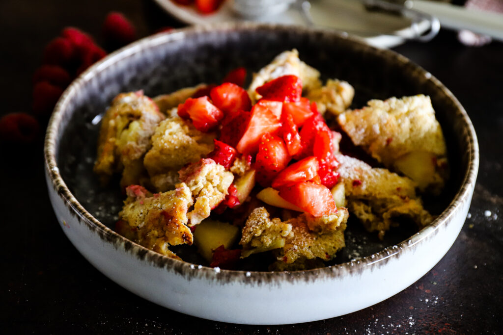 Beeren-Dinkelschmarrn mit Äpfeln, hmm – gibt es bei uns alle zwei Wochen mindestens einmal. Da sich Junior von Grießschmarrn nun