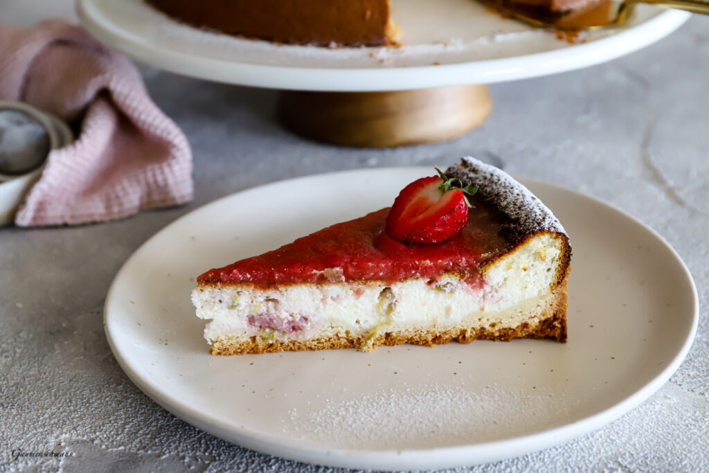 Wie könnte ich auf einen Cheesecake in der Rhabarber Woche verzichten. Ein Cheesecake mit Rhabarber steht nämlich schon sehr lange