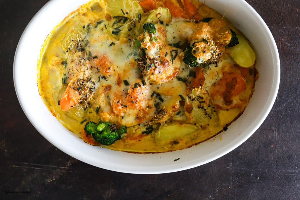 Was macht ihr, wenn euch Suppe übrig bleibt? Wisst ihr, was total schmackos ist? DIESES Gemüsegratin. Durch die gewürzte Suppe