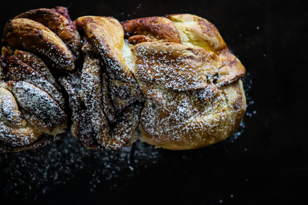 Babka zum ersten und garantiert nicht zum letzten Mal gemacht. Unsere Babka mit Marmelade, Butter, Zucker und Zimt hat keine