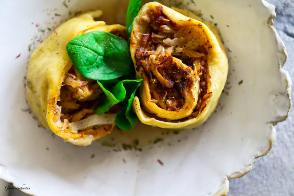 So gemütlich gehts in die neue Woche. Die Krautkrapfen versprechen megagutes Mittag- oder Abendessen. Ganz schnell und einfach gemacht –