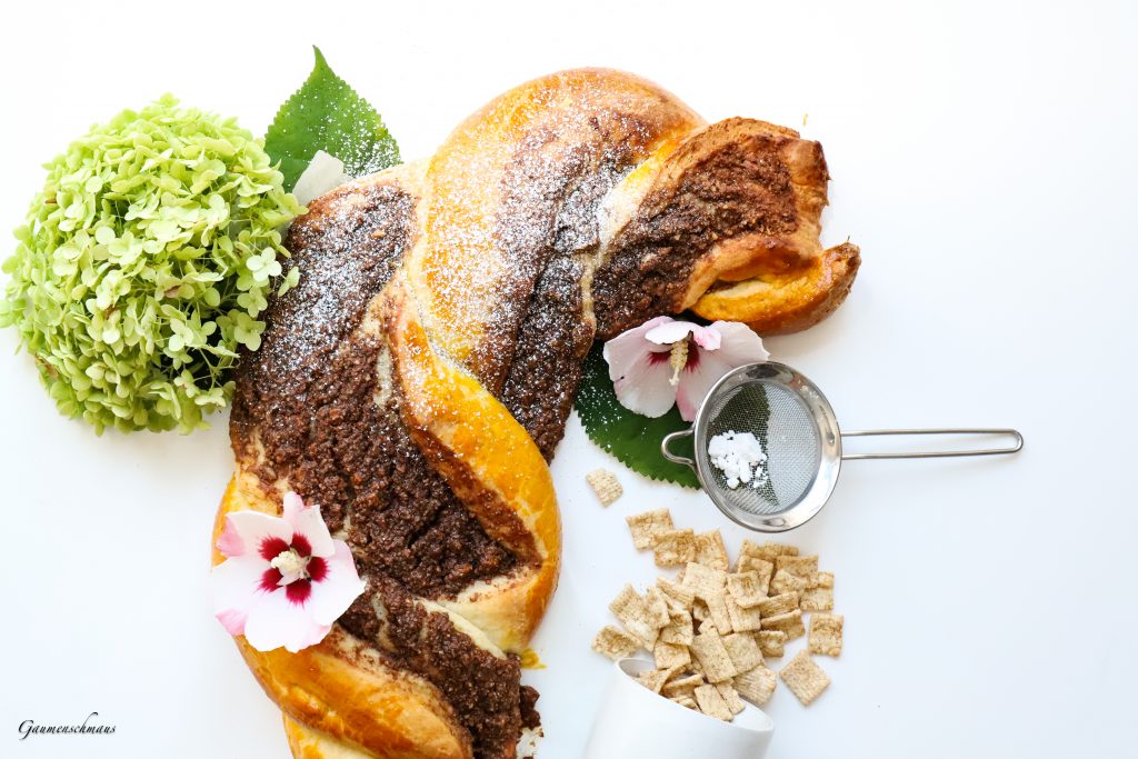Muss es denn immer Hefeteig sein? Nö. So auch hier bei unserem Frühstücksstriezl nicht, den wir uns ebenso gerne abends
