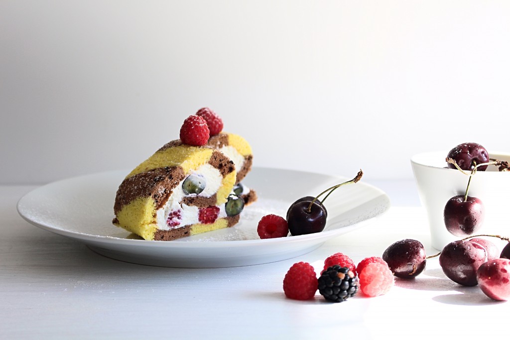 Wenn das Leben dir Früchte gibt, dann mach eine Biskuitrolle daraus. Früchte zupfen, Sahne steif schlagen und mit Quark und