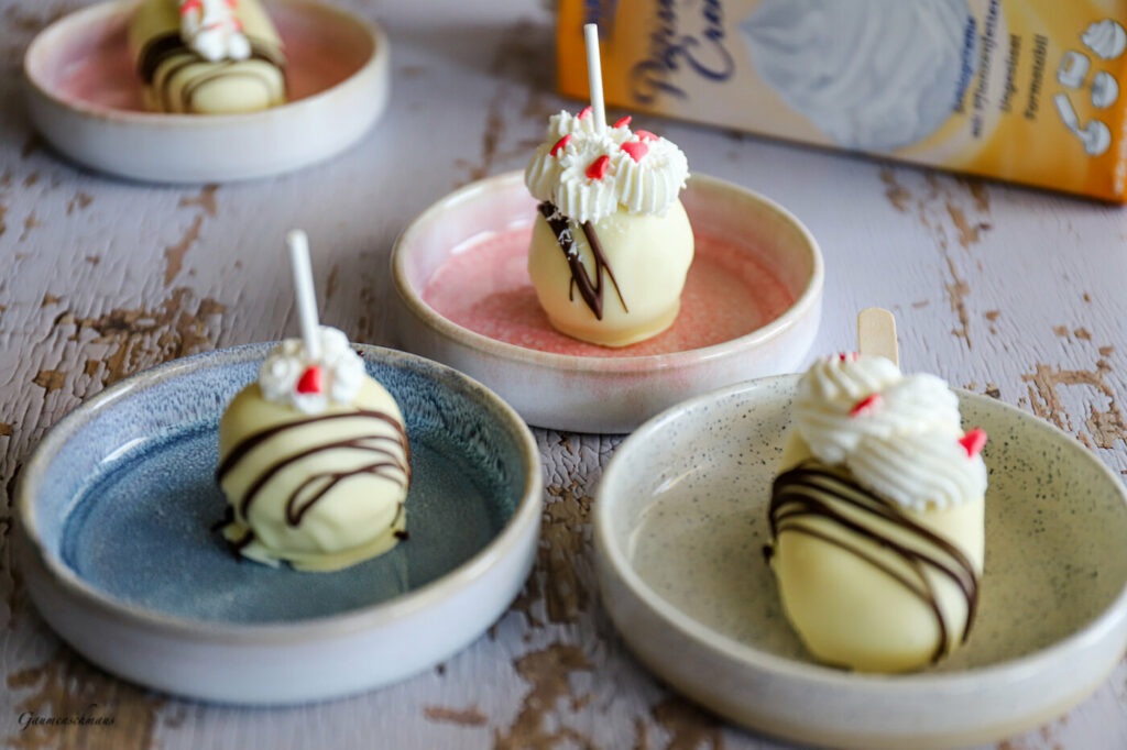 Eispralinen mit Guma Patisserie Creme sind ein besonderes Highlight für jede Dessertauswahl. Vor allem im Sommer. Die Kombination aus Topfen,