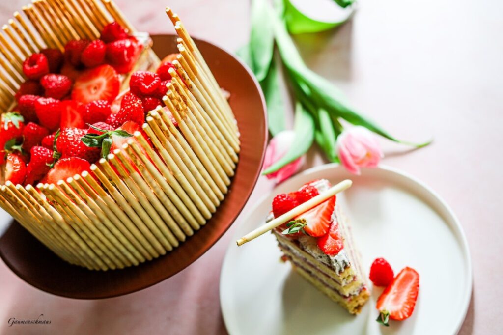 Die Beeren-Stracciatella-Torte ist die perfekte Überraschung zum Muttertag – fruchtig, cremig und mit viel Liebe gemacht. Der helle Biskuit trifft